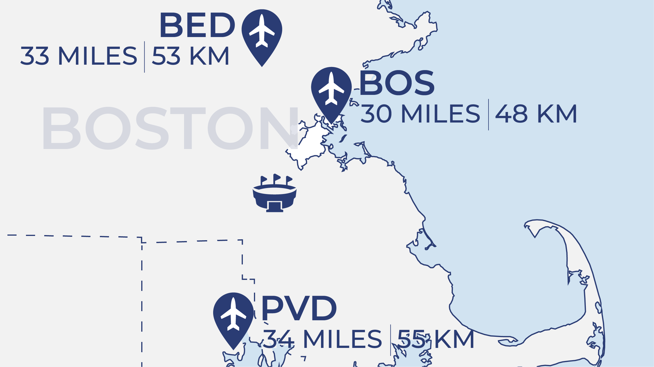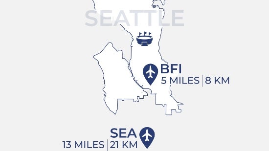 LGA is about 6 miles from Manhattan and 20 miles from the stadium. Though it lacks a direct rail link, buses and taxis connect to the subway and NJ Transit. Driving takes 30-45 minutes, making LGA a convenient choice for domestic travellers heading to the stadium. Runway lengths of around 7,000 feet limit operations to narrowbody and midsize business jets.